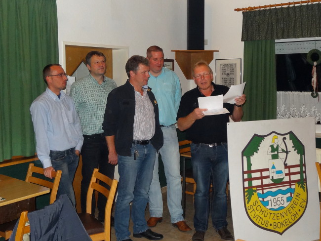 Thomas Kater (mitte) wurde mit 60/60 Ringen Vereinsmeister in der Schützenklasse. Carsten Westermann (2.von links) wurde mit 60/59/59 Ringen zweiter, vor Hermann Wilbers mit 60/59/56 Ringen.