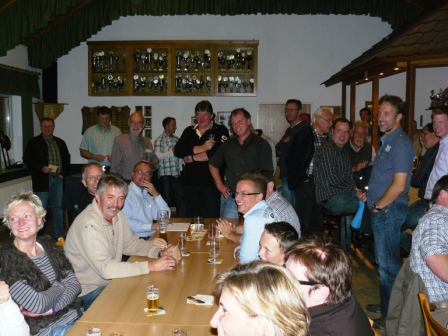 Den Wanderpokal holte der 2-Zug mit 842 Ringen. Der 1.Zug unterlag im Stechen mit 839 Ringen. Beide erreichten in der zweiten Runde 784 Ringe. Der 3.Zug schaffte 779 Ringe.Zugführer Christian Geppert nimmt den Wanderpokal vom 1.Schießoffizier Hubert Knese für den 2.Zug entgegen.