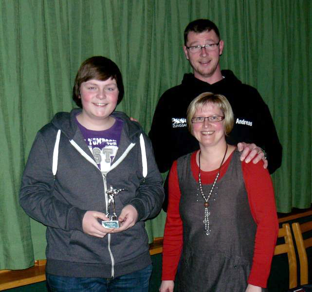 Niklas Knese bekam den Pokal für die beste Beteiligung an den Übungsabenden. Von 43 Abenden hat er 38 mal teilgenommen.